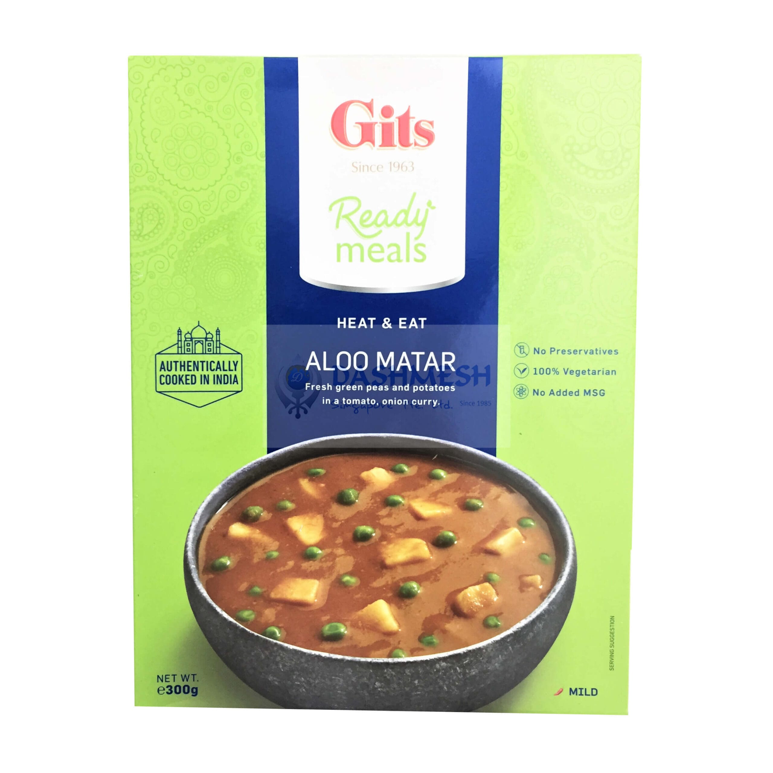 Tender green peas and delicious potatoes cooked in a curry of onions, tomatoes and spices. Convenience guaranteed with Gits Ready