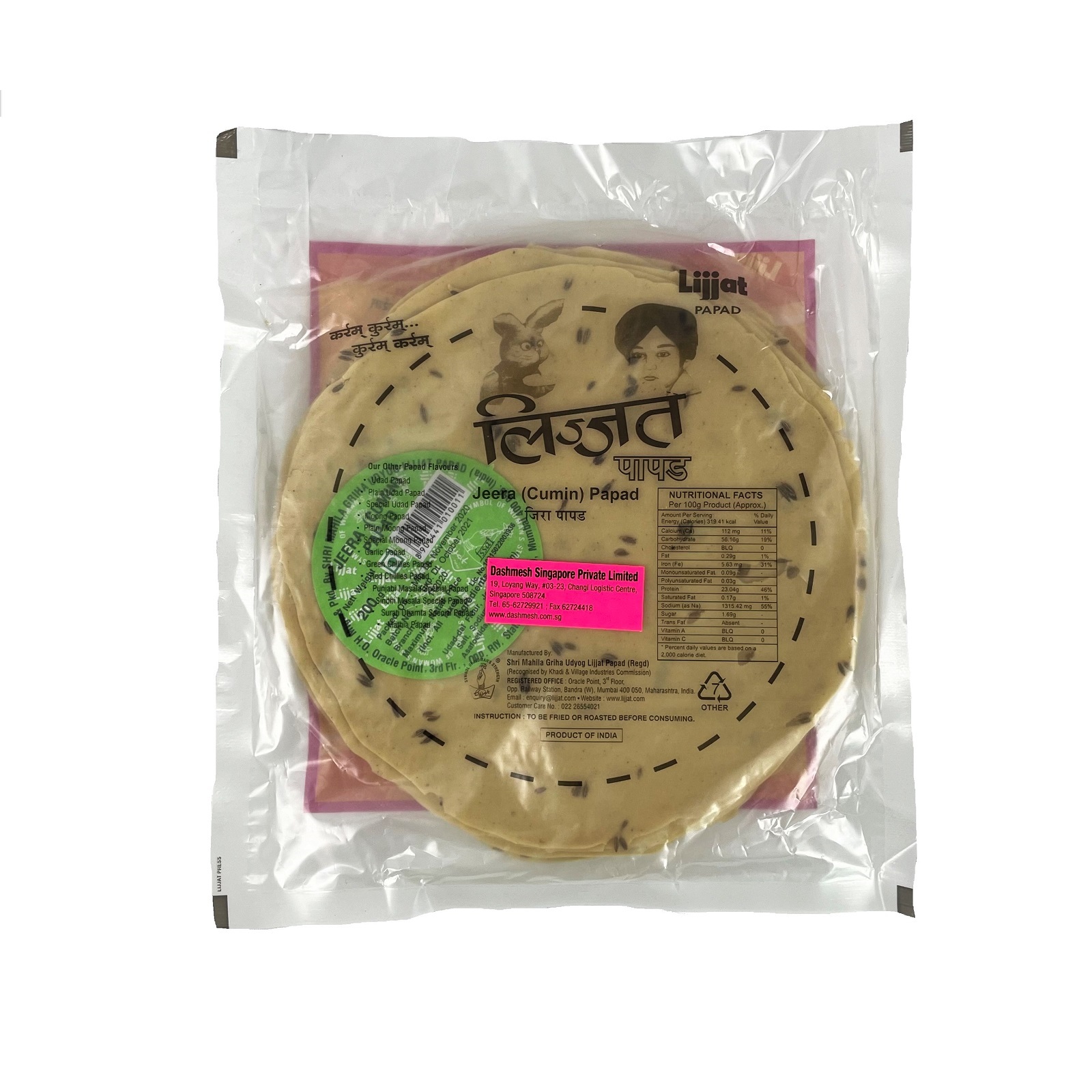 Lijjat Jeera Papad 200g