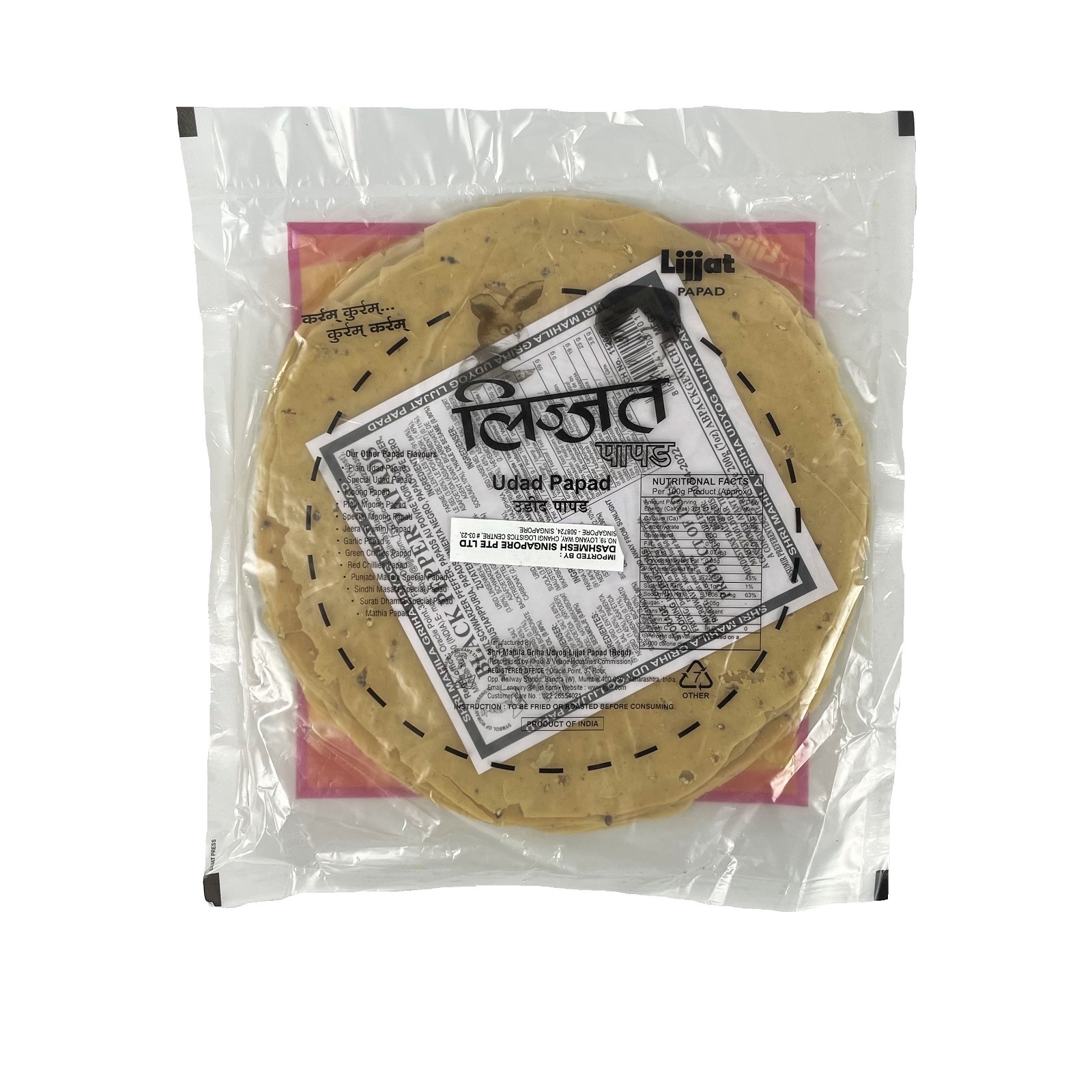 Lijjat Papad is made from urad dal flour and is scrumptious in taste. It can be served as a snack