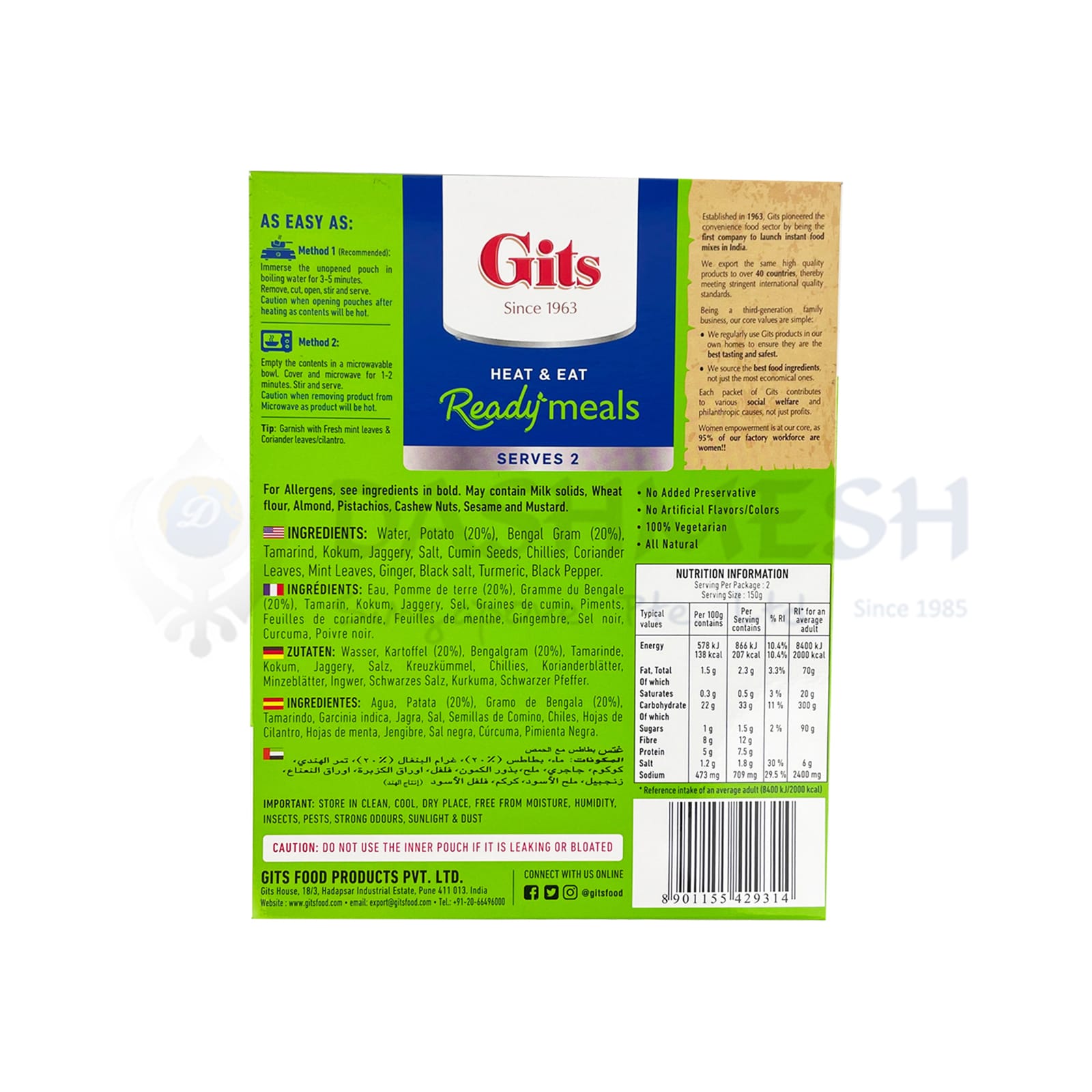 Gits Aloo Chana Chat allows for convenience from the comforts of ones home. Tetra-Packed for added freshness, it is a must have for all kitchens!