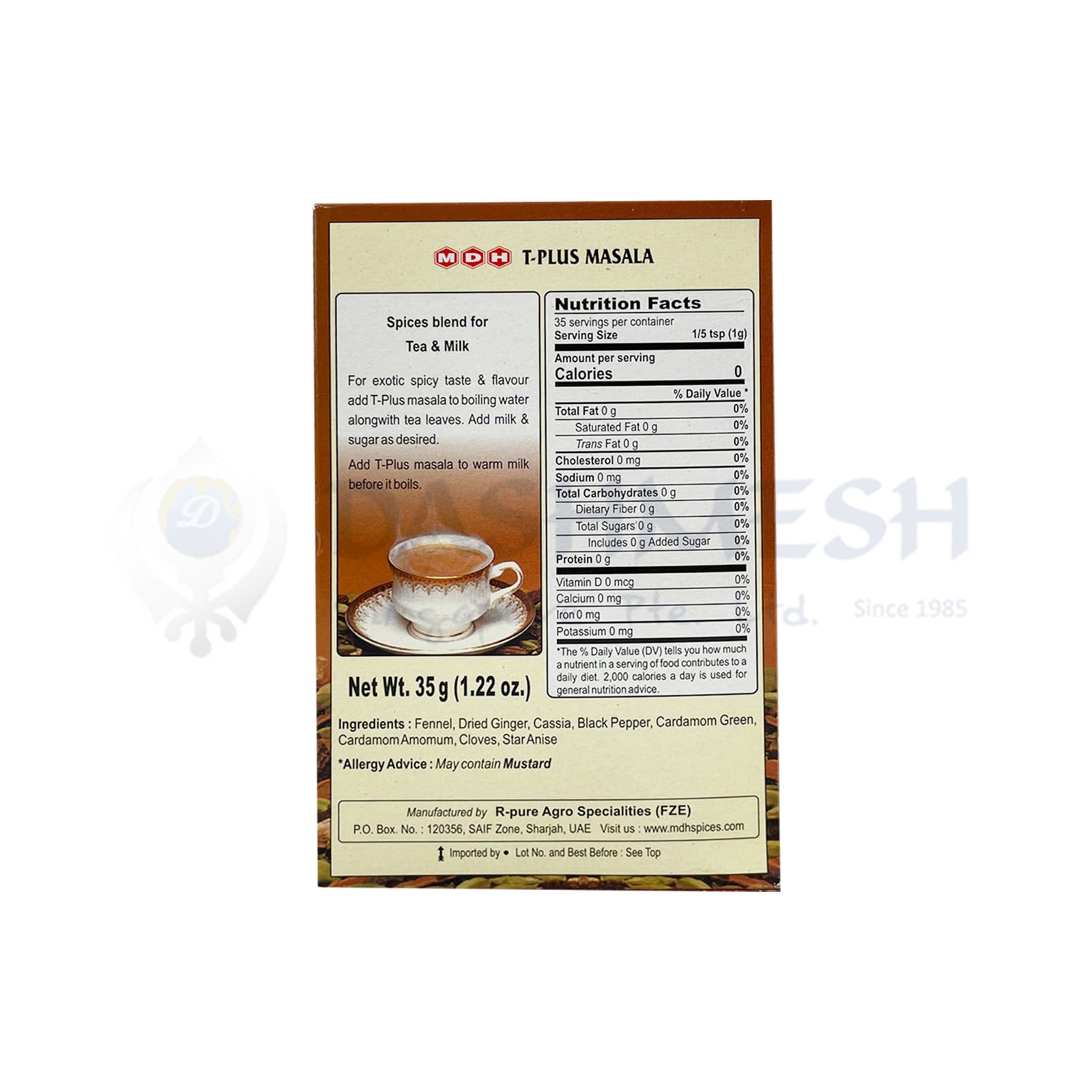 Spices blend for tea & milk, For exotic spicy taste & flavour add T-Plus masala to boiling water along with tea leaves. Add milk & sugar as desired. Add T-Plus masala to warm milk before it boils for the perfect cup of tea, every time.